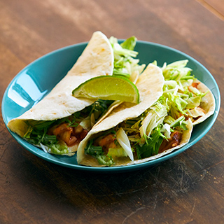 小麦粉の皮にお肉や魚、野菜を巻いて食べるテクスメクスの代表的料理。決めては自家製サルサソースとナチョソース!